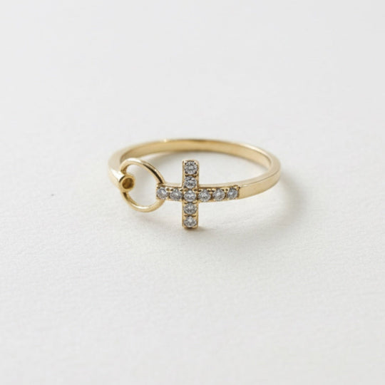 A delicate 14K gold ring with a polished cross motif and a brighter, light-catching finish. Minimal yet expressive, it brings a subtle statement to your everyday stack—clean from afar, striking up close. Wear it solo for...$320 -